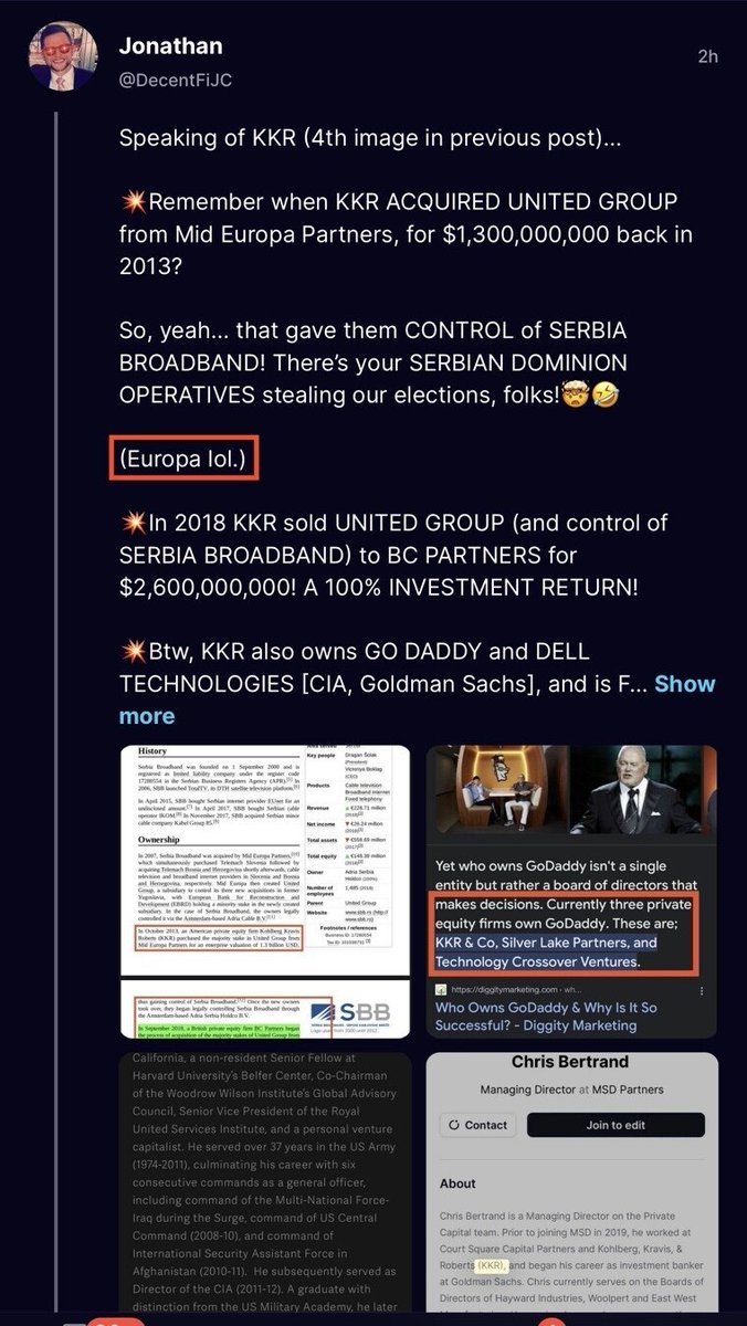 💥In 2018 KKR sold UNITED GROUP (and control of SERBIA BROADBAND) to BC PARTNERS for $2,600,000,000! A 100% INVESTMENT RETURN!
