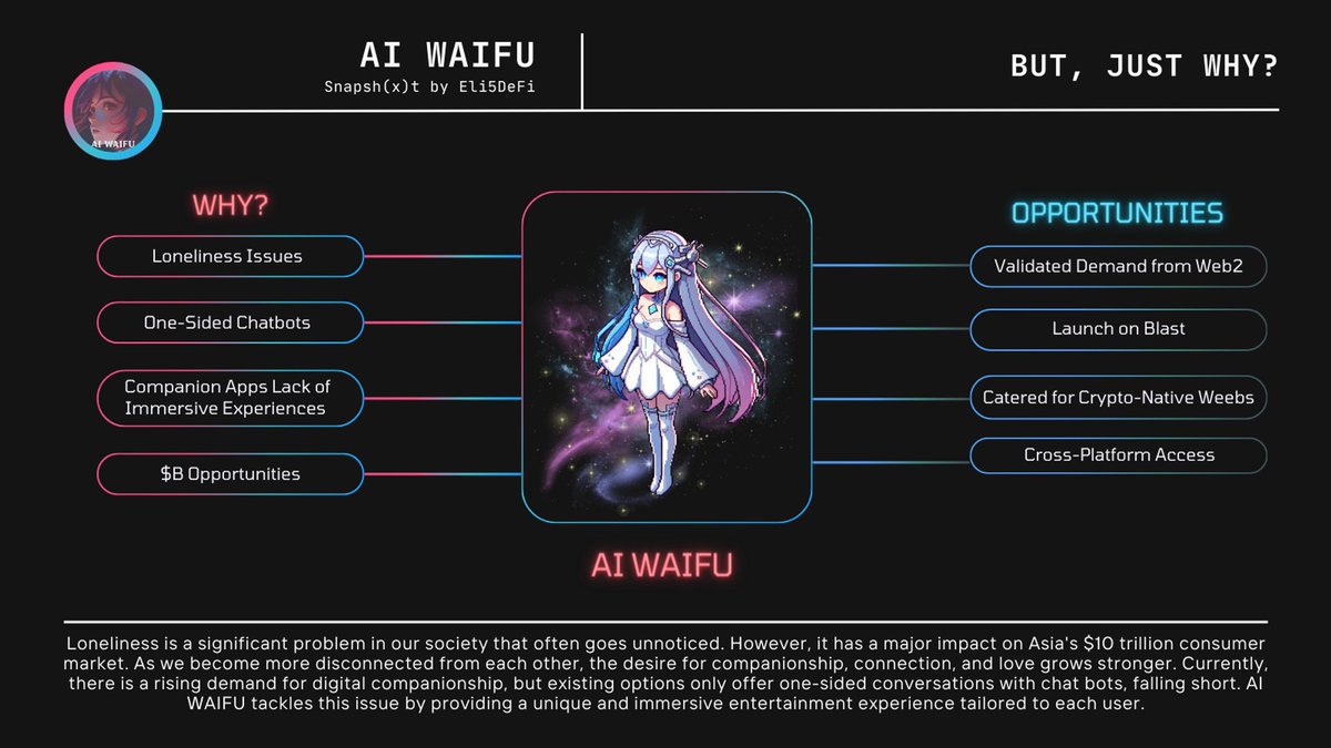 → Phase 2 aims to enhance the AI Waifus by incorporating visual and sensory elements through cutting-edge technology and wearables such as @Apple Vision Pro and other VR devices