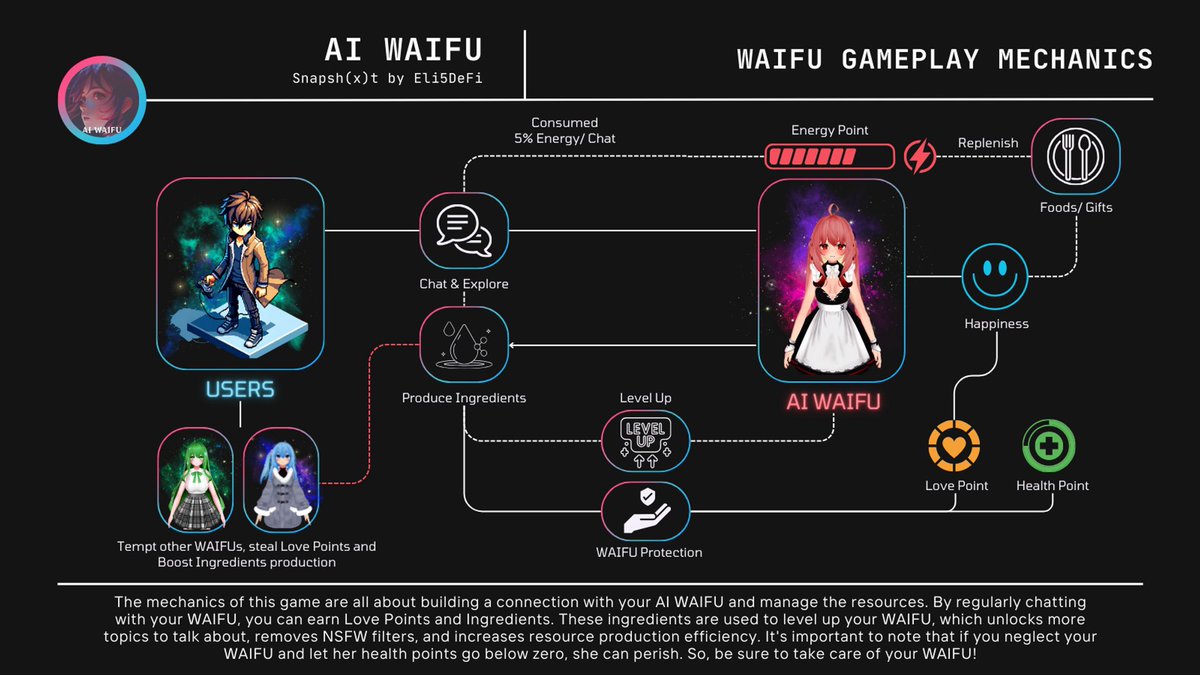 → The mechanics of this game are all about building a connection with your @aiwaifugg and manage the resources.