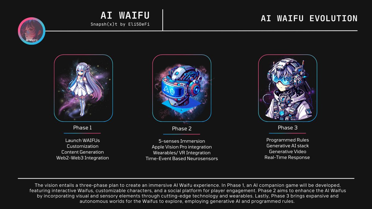 → The @aiwaifugg vision entails a three-phase plan to create an immersive AI Waifu experience.