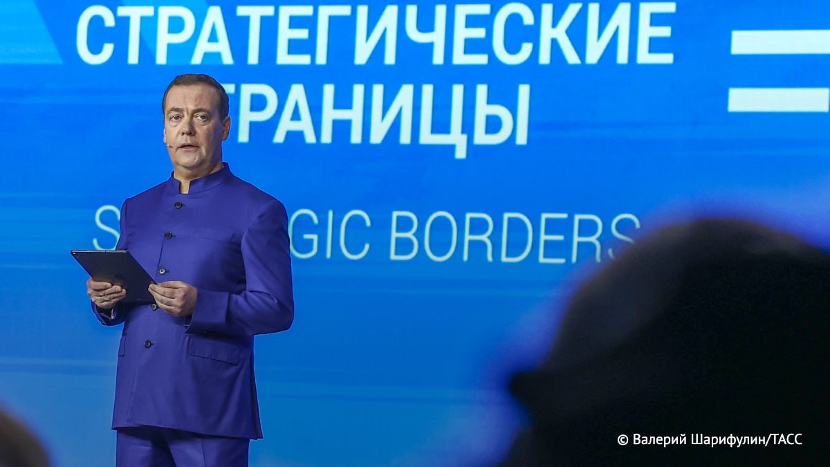 #Russland/s Ex-Präsident und aktuell stellvertretender Vorsitzender des nationalen Sicherheitrats #Medwedew : "Die Ukraine ist ohne Zweifel Russland, ungeachtet dessen, was ukr. Politiker behaupten". Während seines Vortrags präsentiert er eine Karte, auf der die Ukraine/