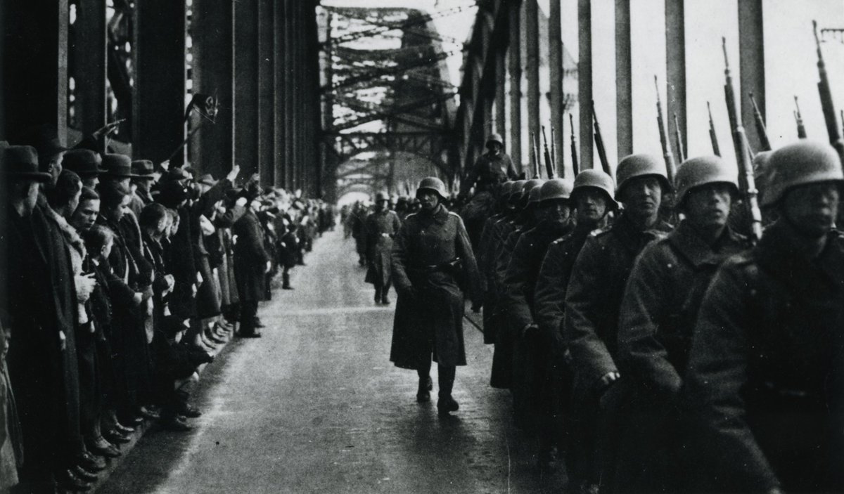 Heute vor 88 Jahren: Hitlers Wehrmacht marschiert ins demilitarisierte #Rheinland ein und bricht damit den Vertrag von Locarno. Das "Dritte Reich" geht damit ein erhebliches Risiko ein. Hitler setzt auf Desinformation und Überraschung, die Garantiemächte reagieren passiv/Thread