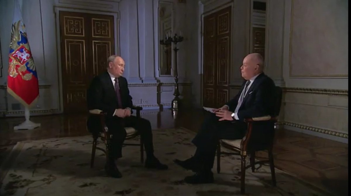 "Jetzt mit ihnen [#Ukraine] zu verhandeln, nur weil ihnen die Munition ausgeht, ist lächerlich" - so #Putin im Interview mit Chefpropagandist Kisseljow. Ein paar Eindrücke zum aktuellen Interview, das nicht viel Neues enthält aber die Sicht Putins noch einmal bekräftigt/1