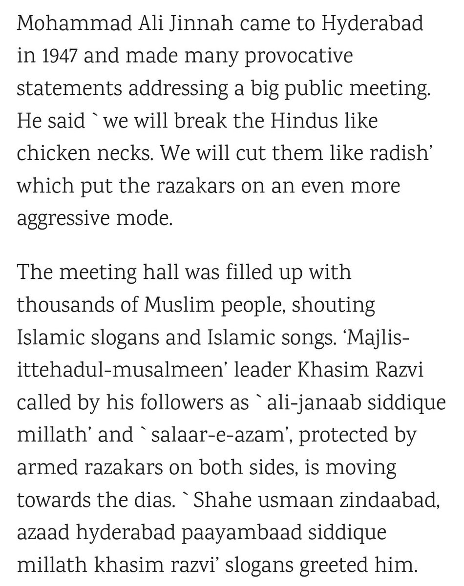 Even today, the Razakars' ideology sometimes pops up in public speeches of AIMIM leaders like Akbaruddin Owaisi.