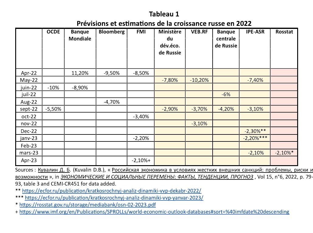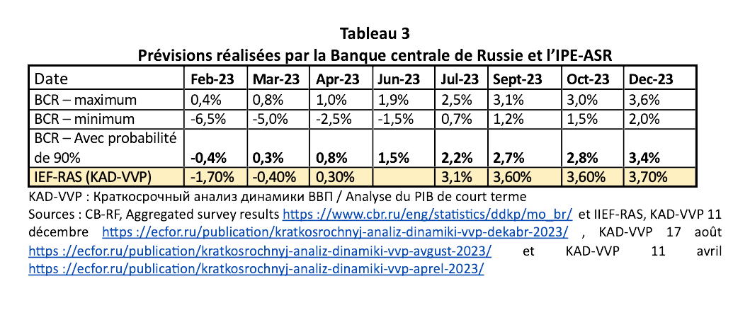 III Cette note analyse aussi les erreurs commises par les institutions russes. Elle montre qu’il y a une différence substantielle entre la Banque Centrale de Russie et l’Institut de Prévision.