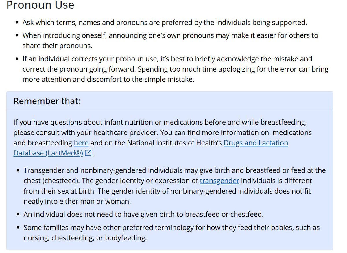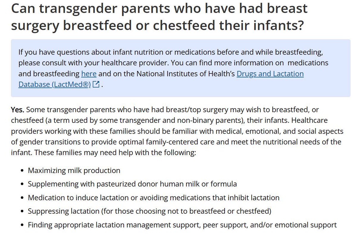 For example, the CDC website claims that “transgender” parents “may need help” to breastfeed with “medication to induce lactation.”