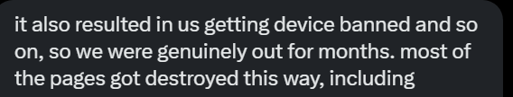 This included device bans which permanently destroyed most of the pages.