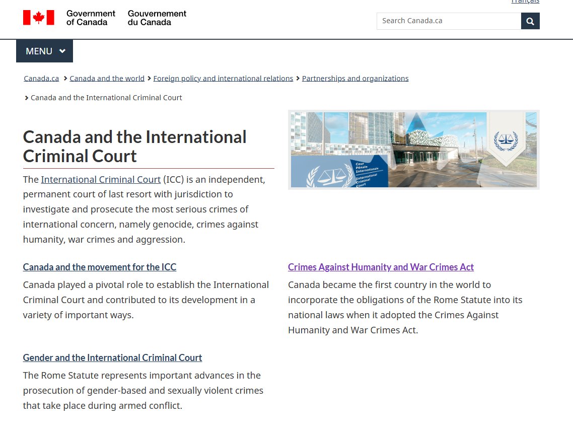 Canada has always been steadfast in it's support for the rule of law. In fact, Canada played a key role in the creation of the International Criminal Court (ICC). The ICC has jurisdiction to investigate and prosecute the most serious crimes of global concern including genocide, crimes against humanity and war crimes.