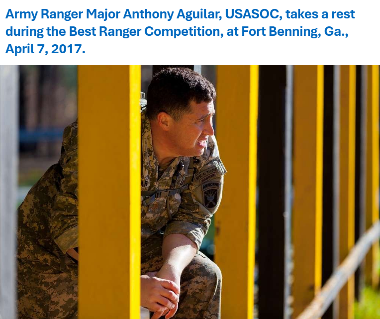 Aguilar served for 25 years in US Special Forces as a combat infantry officer. During his career, he deployed 12 times to Iraq, 3 times to Afghanistan, 3 times to Syria, as well as 1 time each to Tajikistan, Kazakhstan, Jordan, the Philippines, Malaysia, Thailand, Cambodia and Vietnam. He saw combat in most of those venues.
