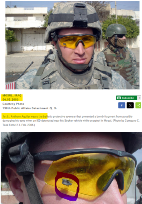 Col. Aguilar is a highly decorated officer. He received a Purple Heart for wounds received in combat, a Bronze Star for valor in combat, and an Army Commendation Medal for valor in combat.