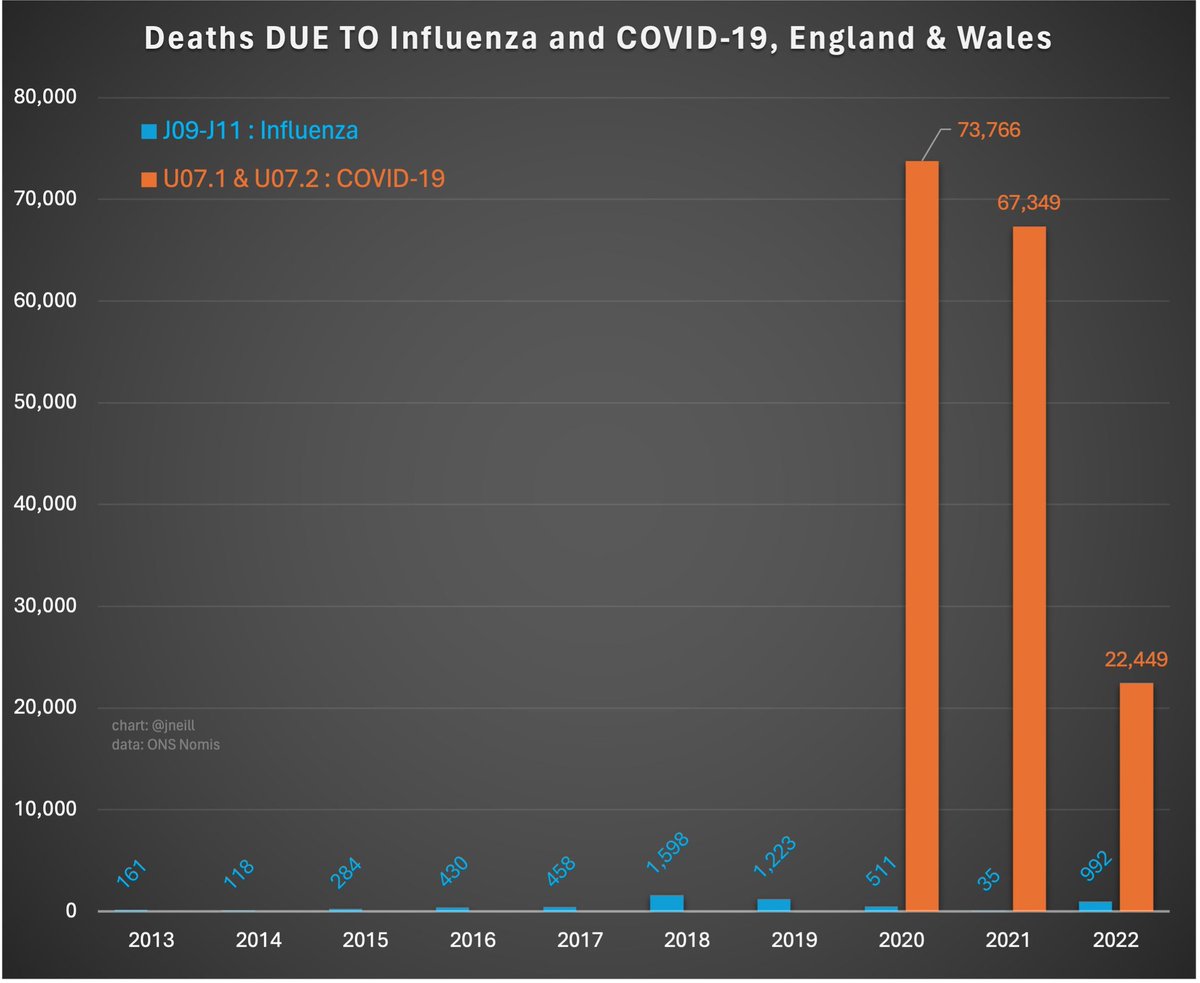 Many more people continue to die from Covid than 'flu. (HT @jneill)