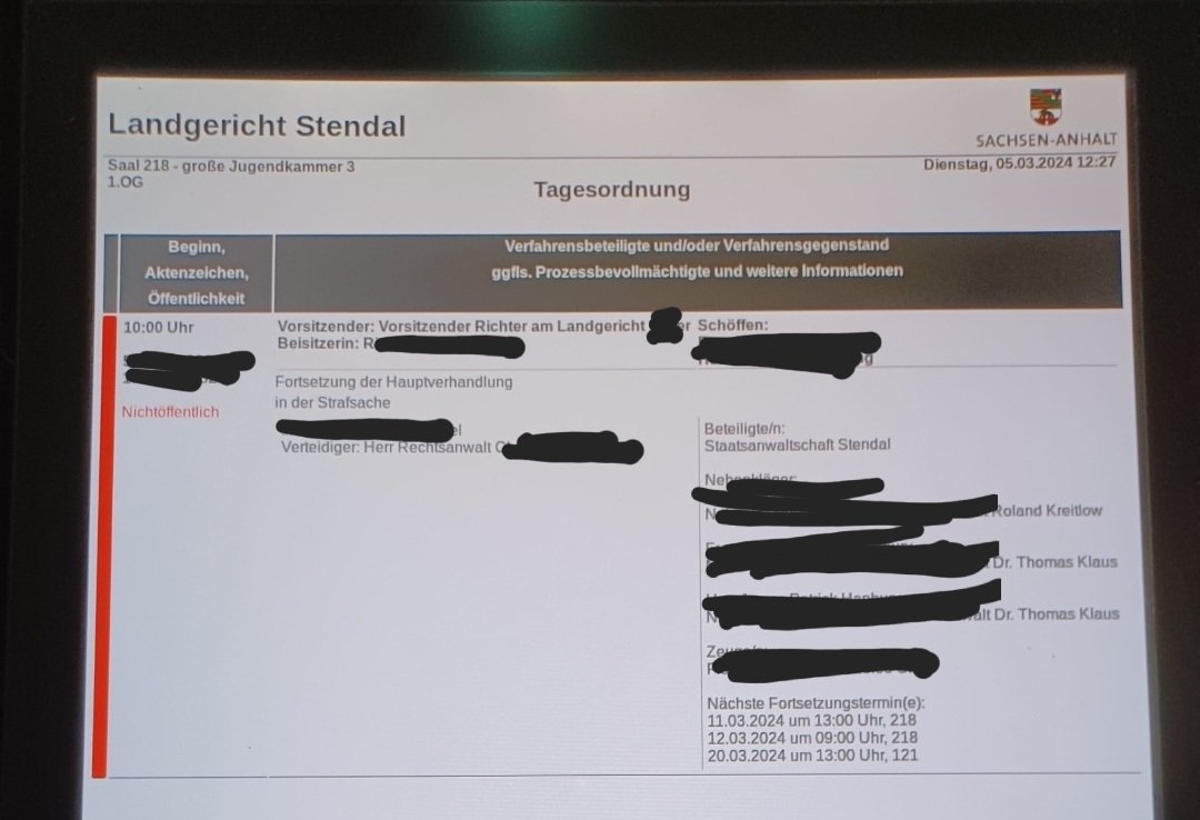 Und hier ist ein Foto von dem Anschlag vor dem Gerichtssaal.