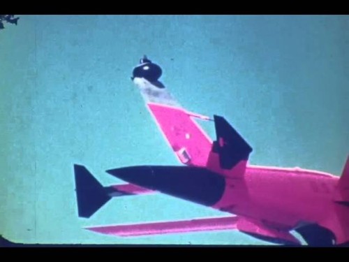 To accomplish this remote weapons delivery capability, a datalink antenna was installed on the top of the vertical stabilizer, which transmitted a feed from the nose-mounted TV camera back to the drone operator, as well as some flight information.