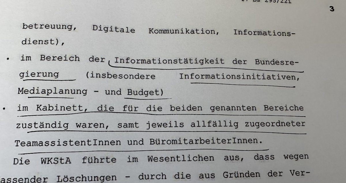 Die WKStA will aber wissen, ob Beinschab-Fake-Studien von Kurz und Co auch noch bis 2021 vermarktet wurden, so der Verdacht. Also hat die WKStA das gemacht, was sie schon im BMF gemacht hat, sie hat eine Sicherstellung von Emails der Abteilung für Öffentlichkeitsarbeit angeordnet