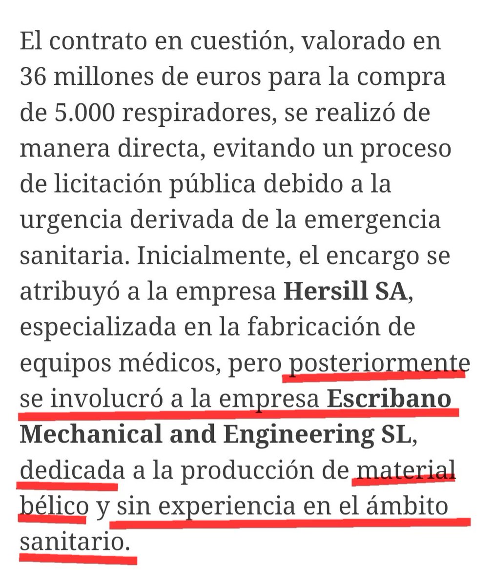 Según las informaciones periodísticas, tras el contrato A DEDO entre el Gobierno y el fabricante, Hersill; apareció, nadie sabe por qué, un contratista del ámbito militar, que interponiéndose, multiplicó sin aportar NADA el precio x3,5 creando un sobrecoste de esos 21,1 millones