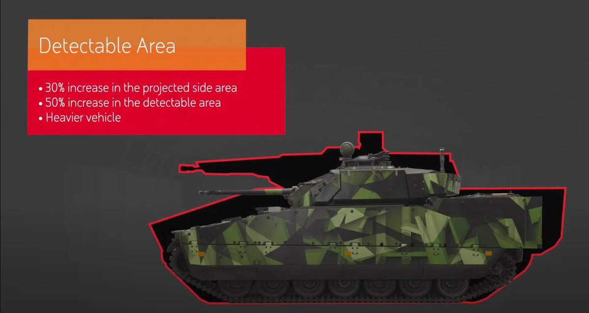 Simple answer is size. CV-90 keeps lower profile, both when it comes to length, width and height. And it does that while keeping sufficient inner space for 8-member mechanized infantry dismount. Important part of CV-90mk.IV survivability is DAS (Defensive Aid Suite)