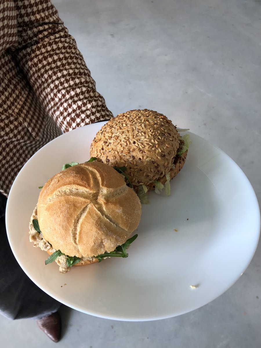 Nu is het pauze. De broodjes zijn vegetarisch.