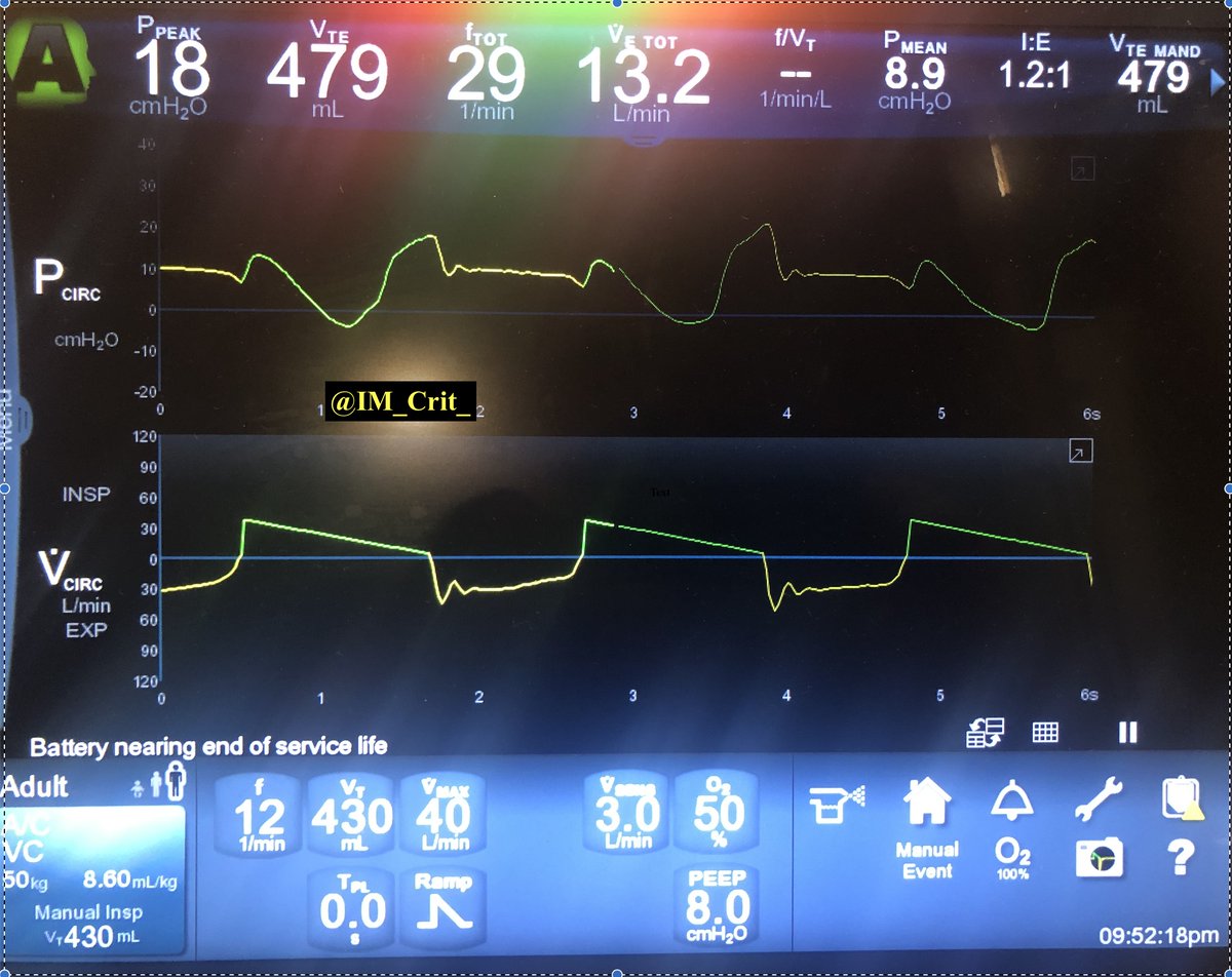 Live coverage - 65 yo, respiratory failure, intubated 3 ds ago. First thing I saw on the ventilator screen: