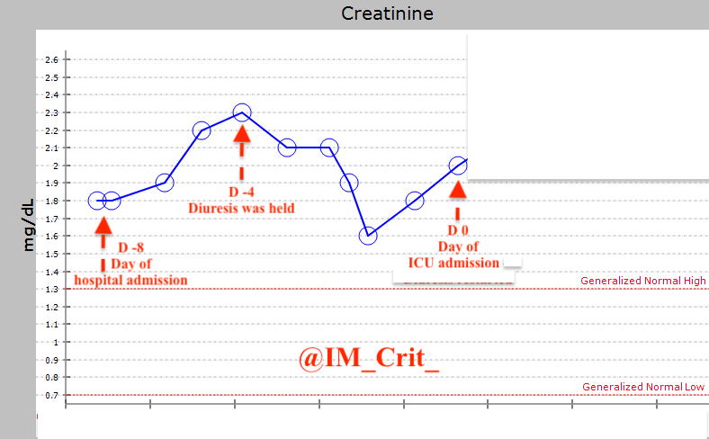 85 yo pt w coronary art dz, diastolic heart failure, A.fib, COPD, HTN, HLD, DM2, hypothyroidism & morbid obesity (BMI 45) admitted a wk ago to the Medicine service due to shortness of breath & lower extremities' edema. Managed w NIV & diuretics but creat ⬆️ & diuresis was stopped