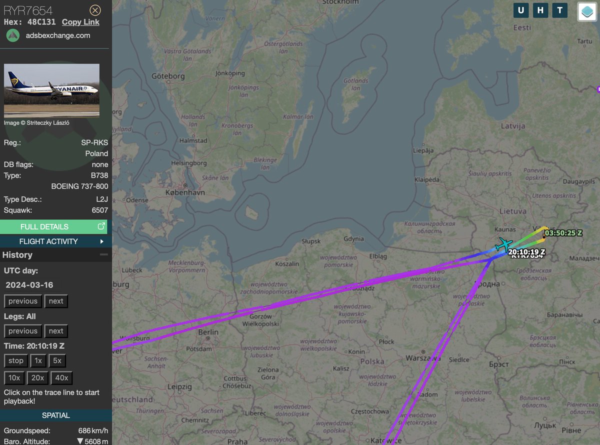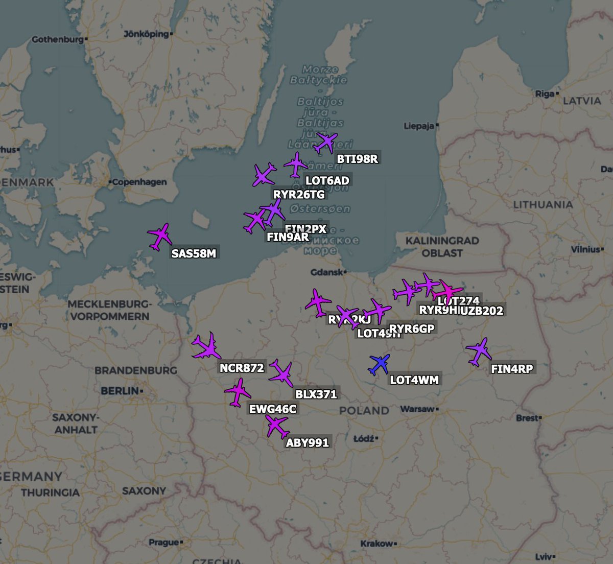 E.g. Ryanairs SP-RKS has been without GPS for at least 2 hours going in and out of Vilnius. Image
