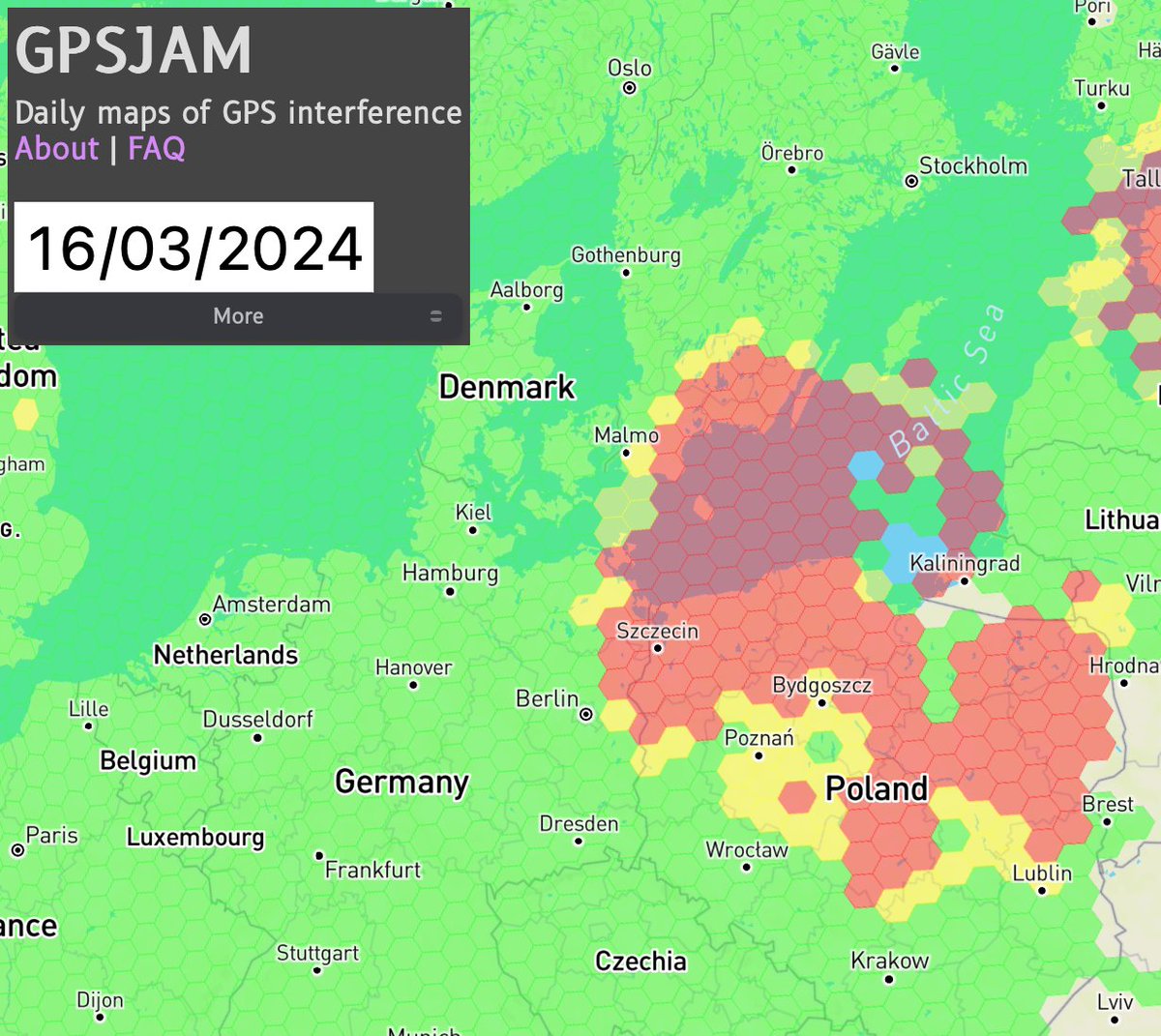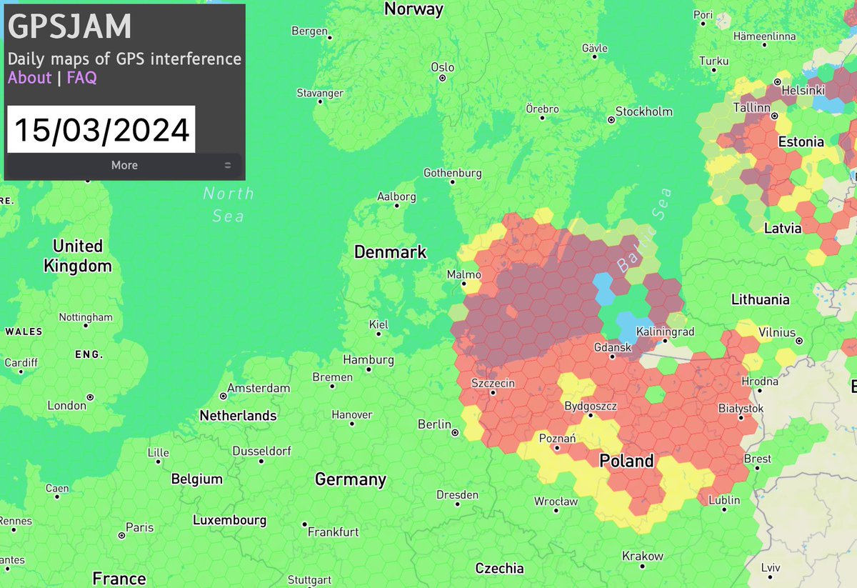 Last 46 hours Baltic Jammer has been running in south Baltics.
