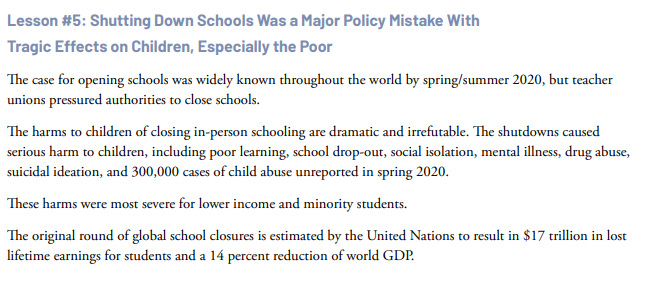 Lesson #5: Shutting Down Schools Was a Major Policy Mistake With Tragic Effects on Children, Especially the Poor