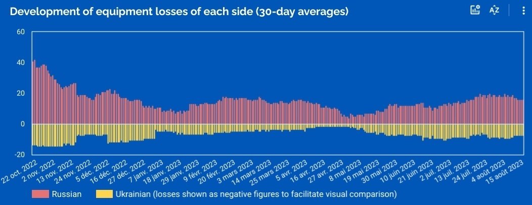 La tendance des dernières semaines est intéressante quand on analyse 'es pertes PROUVÉES par les deux camps en #Ukraine.