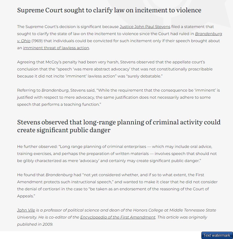 3. Stewart v. McCoy (2002) with an individual who had been accused of advising gang members on how to organize. Justice John Paul Stevens, addressing SCOTUS' denial of certiorari wrote: “Long range planning of criminal enterprises — which may include