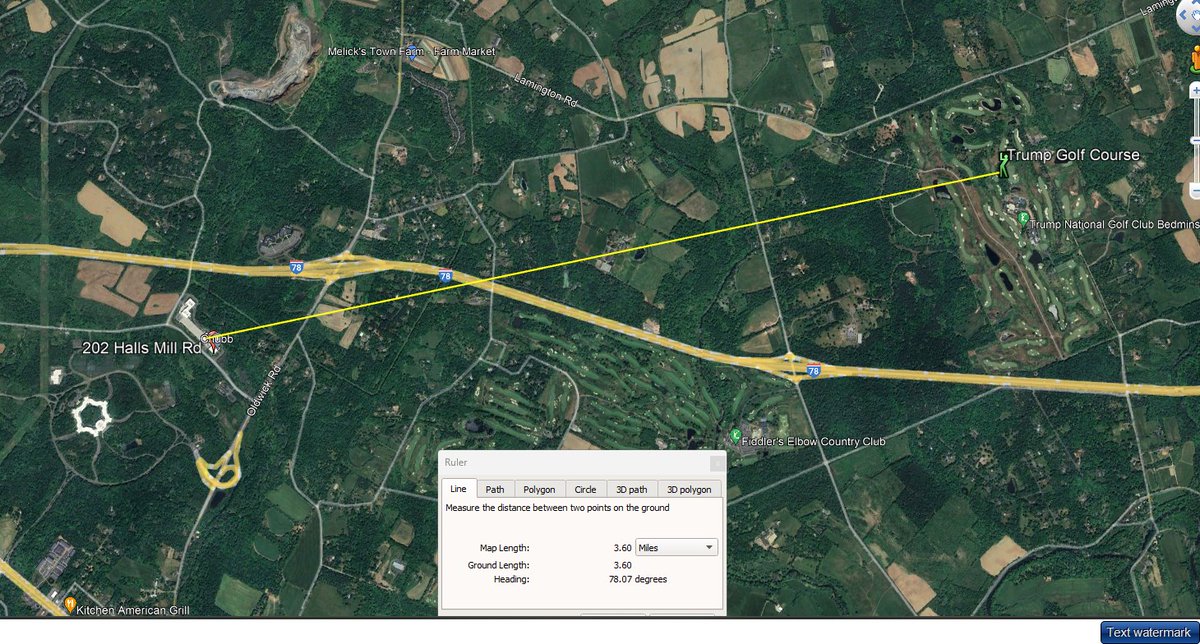 It's 3.6 miles from Trump's Bedminster course