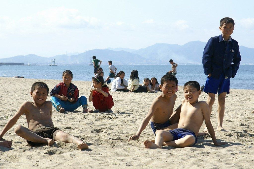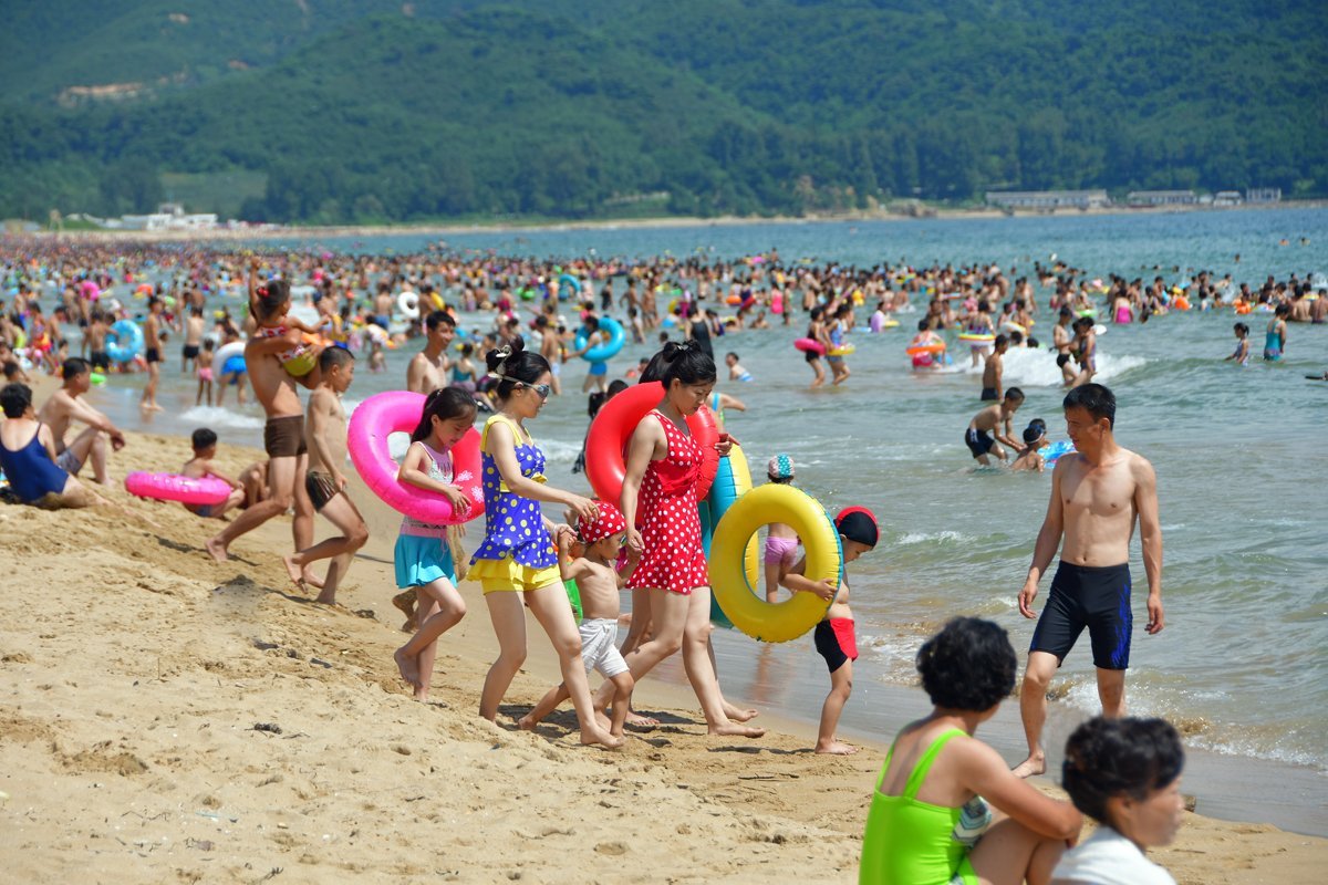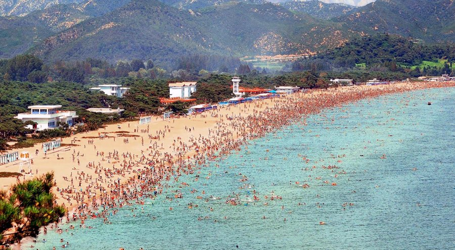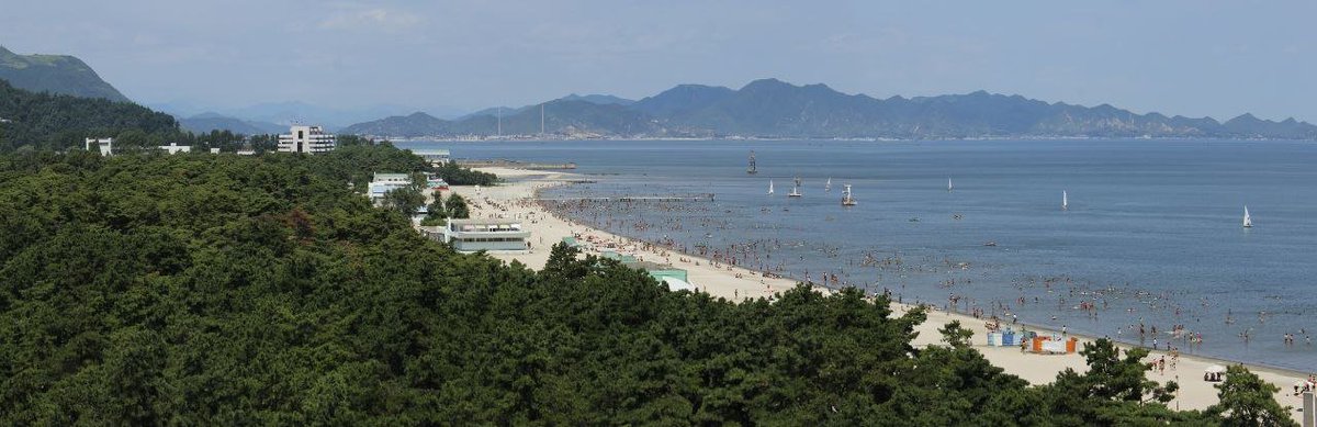Essas são as praias na Coreia do Norte, repare na preservação do espaço.
