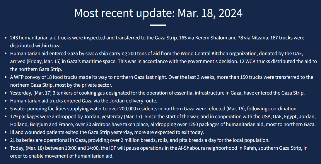 9. De update van @cogatonline over vandaag laat zien dat IEDERE DAG grote ladingen humanitaire hulp #Gaza binnenkomen. Dit kan ALLEEN met de medewerking van #Israel. Het argument van @KatiPiri is daarom feitelijk onjuist, maar bovenal smakeloos. Zie hier voor de laatste update: