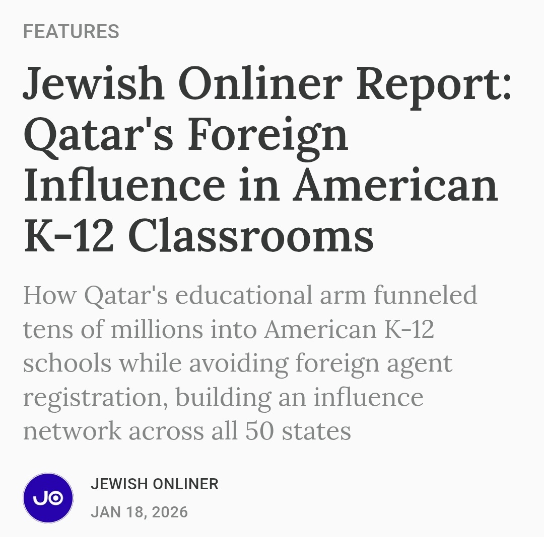 A disturbing new report by @JewishOnliner details how Qatar Foundation International funnels tens of millions into American K-12 schools.