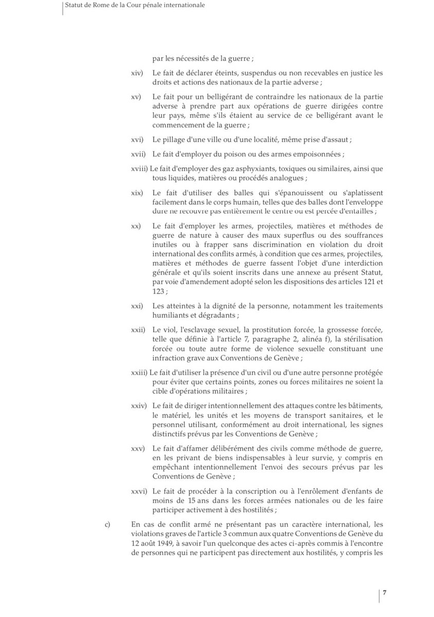 6. Le droit international recense en effet de multiples crimes de guerre : meurtres, viols, torture certes..