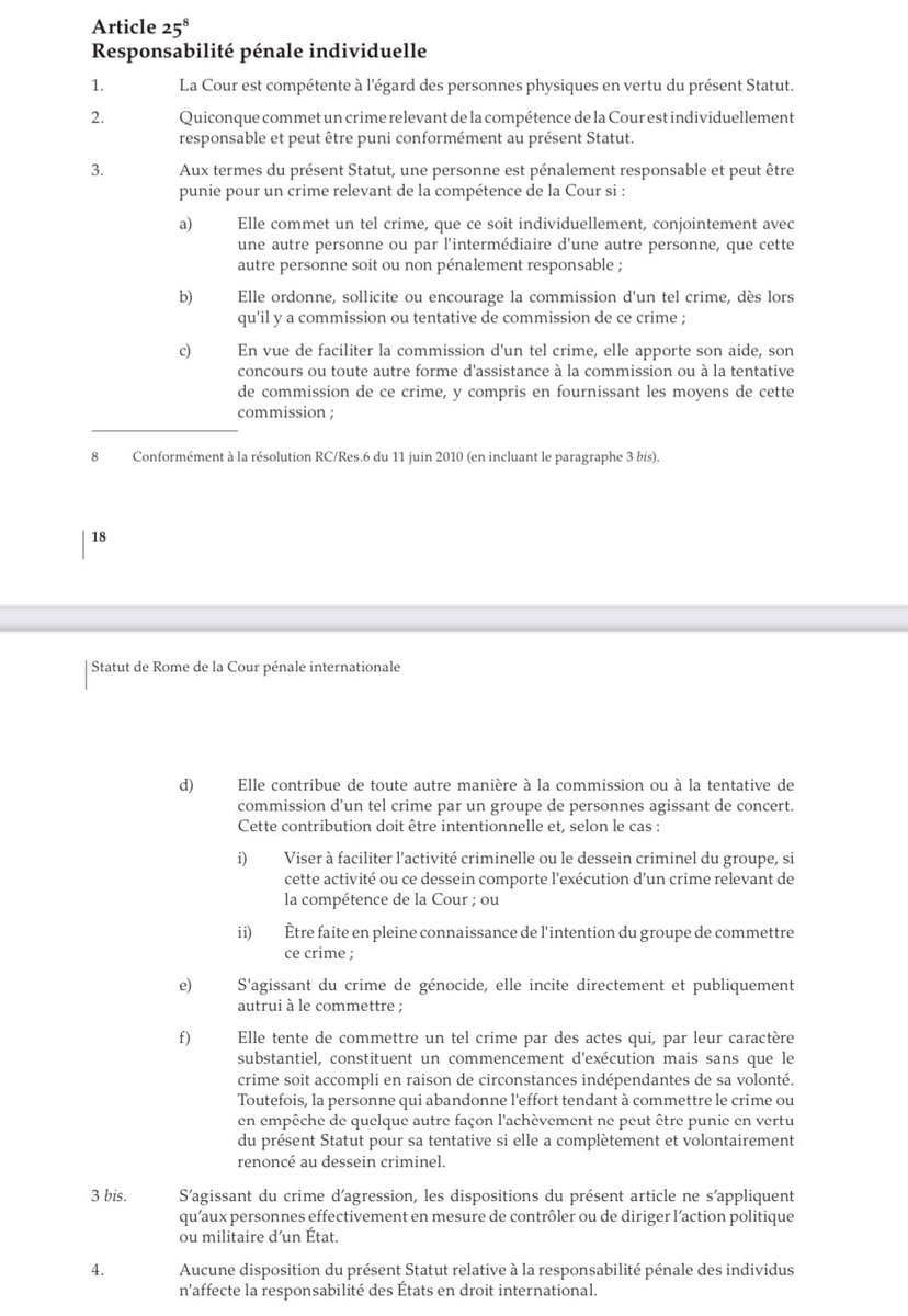 Les articles 25 et 28 du Statut de la @CourPenaleInt en font la liste.👇