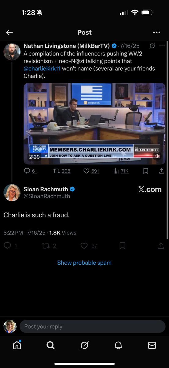 The dumbass forgot to delete her replies to his handle. This bitch literally hated Charlie Kirk.