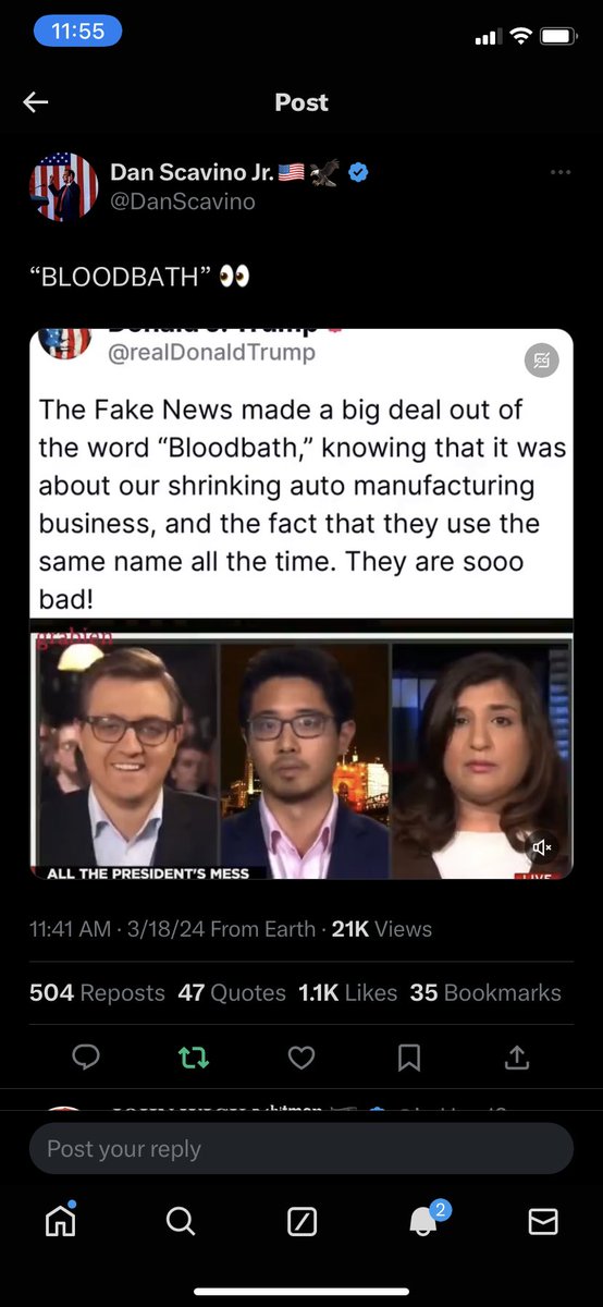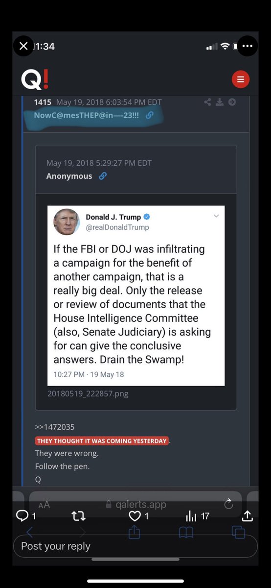 We can attach this to that? DJT on Truth, will note it’s from yesterday. Check this out. It’s timestamp. 21:18. The drops TS? 18:22. I f you saw the attached Dan gap you’ll see why it’s relevant. I’ll attach it in the next bit for summary.