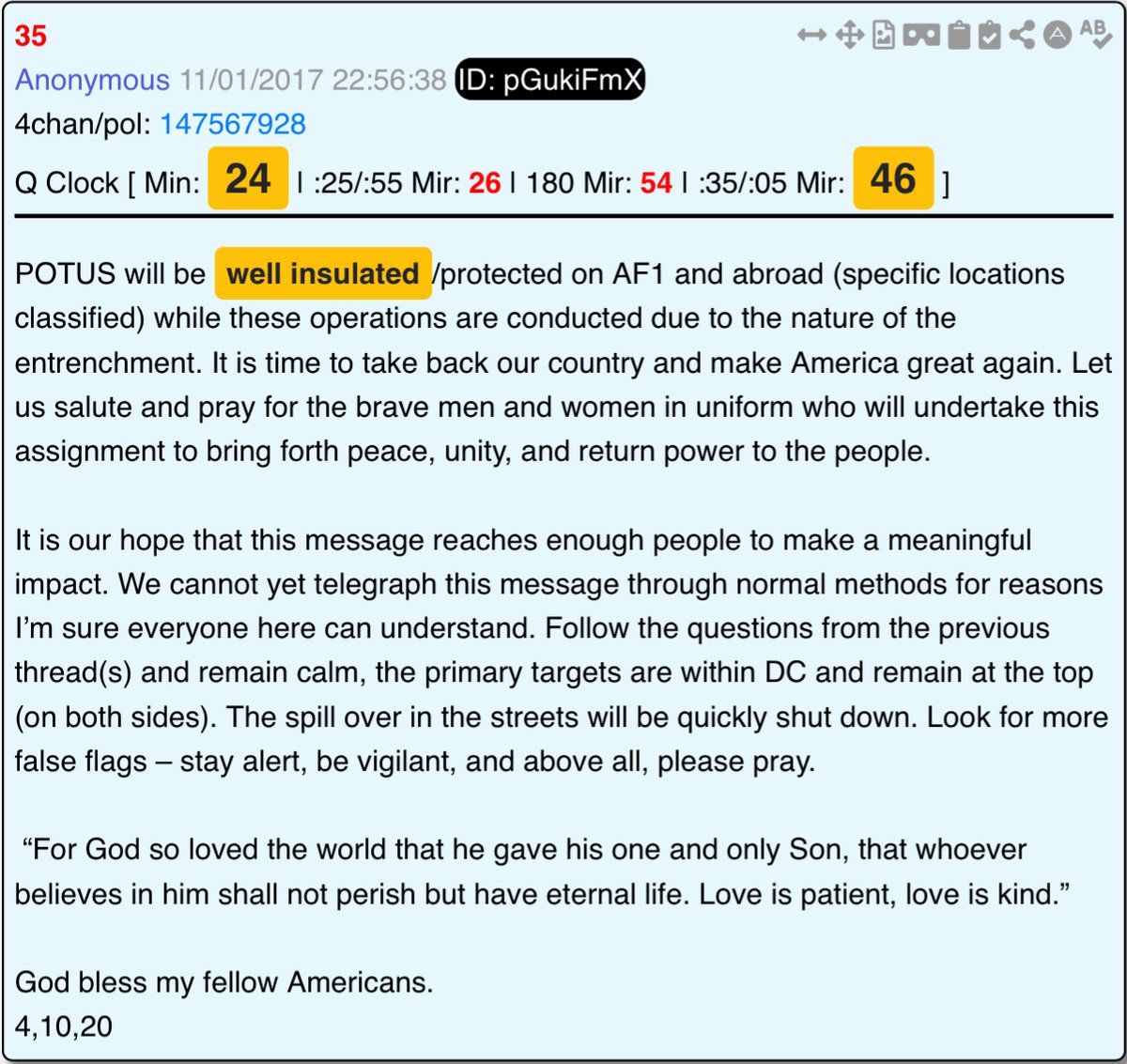 When Dan Scavino posted this :30 sec clip of Air Force One at 4:59pm >> 16:59 MIL, I stopped cold.