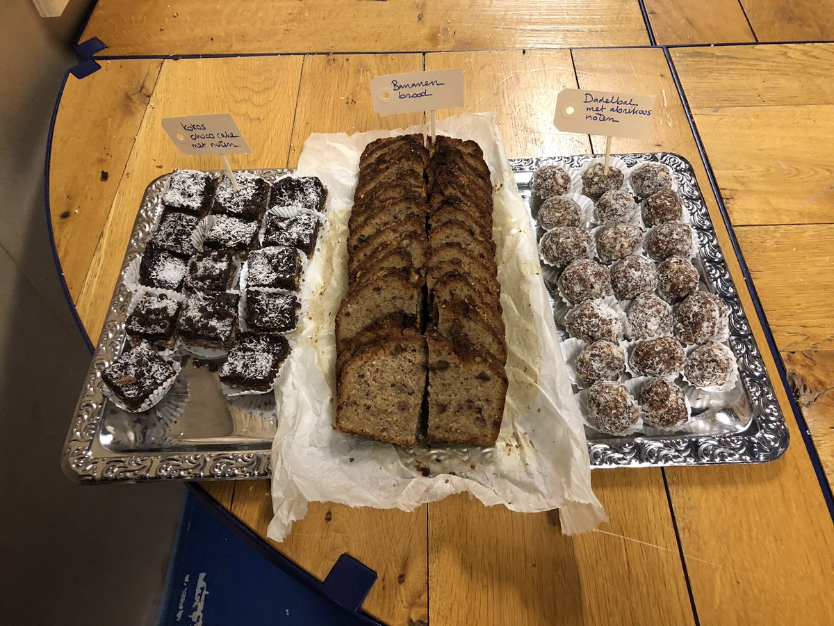 De koek links is een soort boter. Ik zit nu in de zaal en ontmoet Berrie. Dat is de directeur. Hij vertelt me dat ik als eerste een kaartje heb gekocht. Image