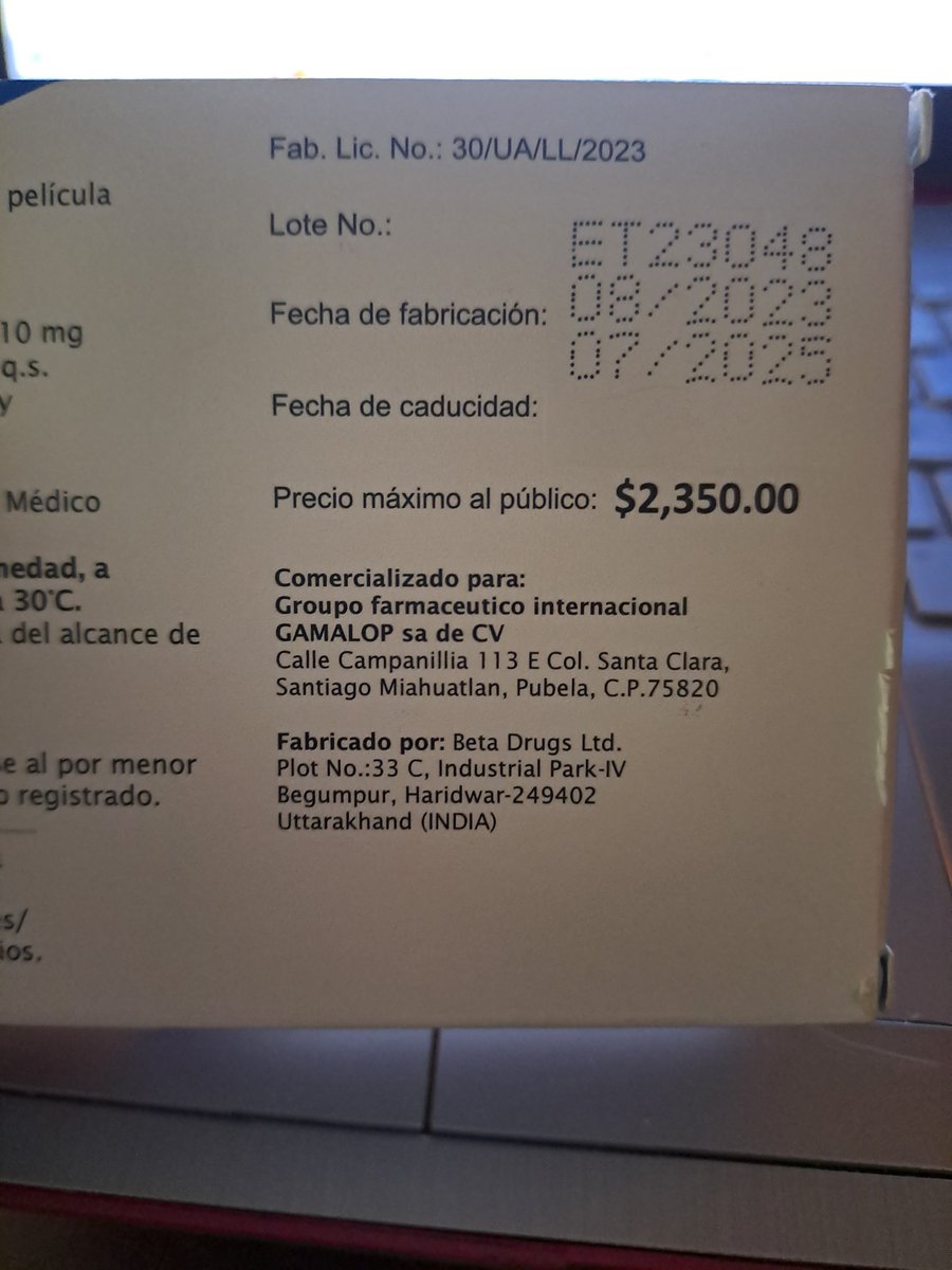Dapoza además viene de India, y su distribuidor en México es "Grupo Farmacéutico Internacional Gamalop", que está en el registro de distribuidores irregulares de Cofepris. O sea, ni la medicina tiene registro, ni ellos tienen todo en orden para distribuir.