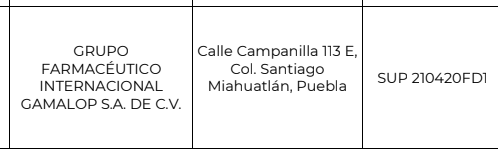 Gamalop aparte se creó apenas en 2021 y la dirección que tiene registrada no aparece ni en Maps ni el INEGI, y está en un pueblito en Puebla donde difícilmente es realista que exista una importadora de medicamentos. O sea, empresa fantasma.
