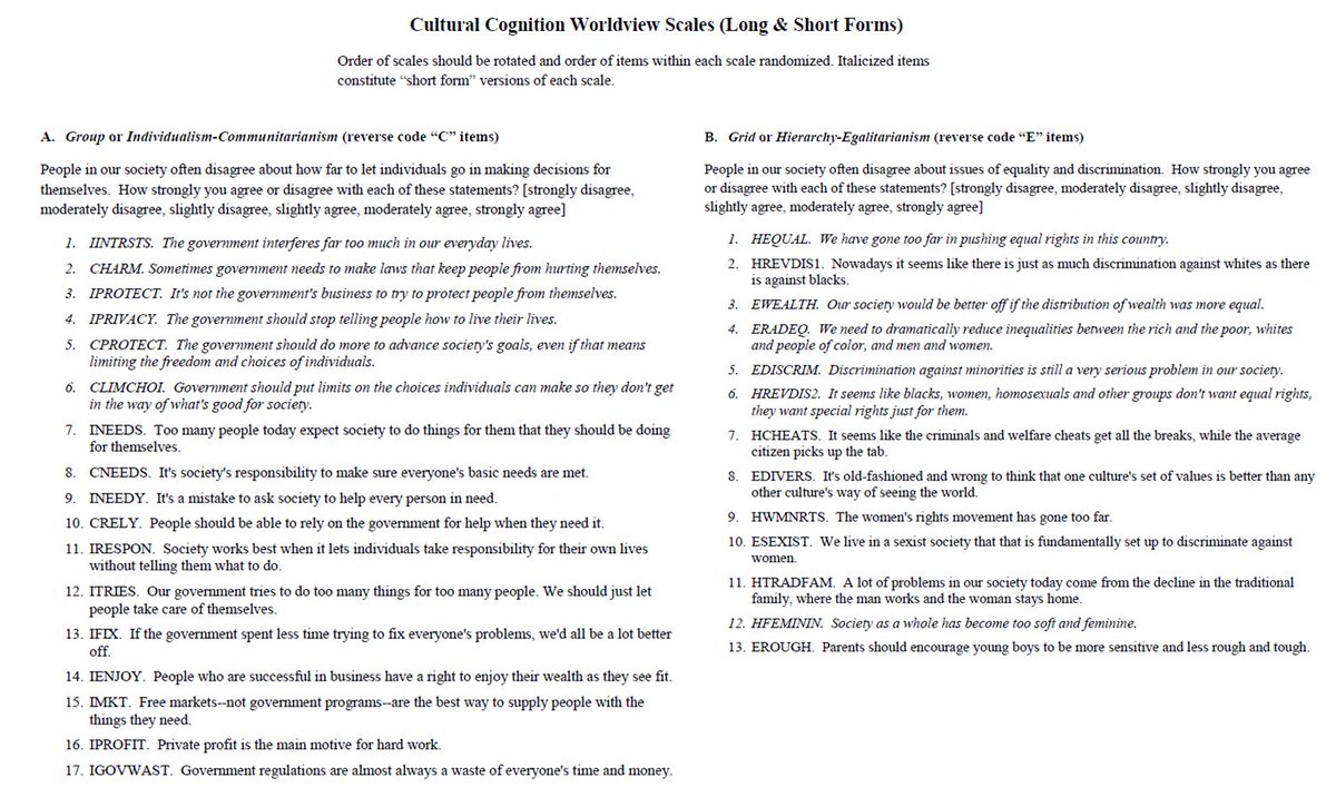 Curious whether you're a hierarchical individualist or an egalitarian communist? Here's the test: