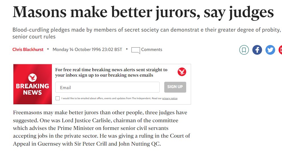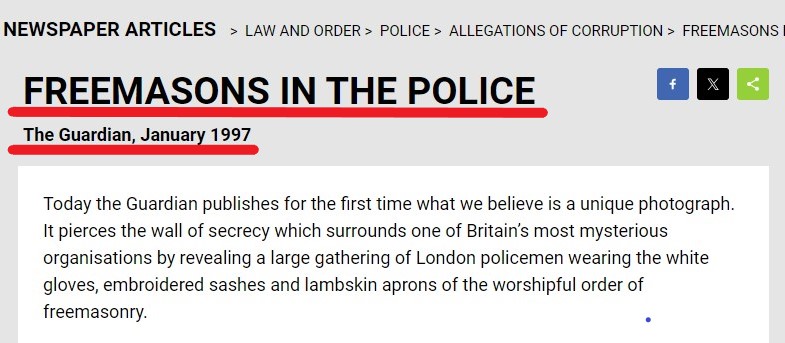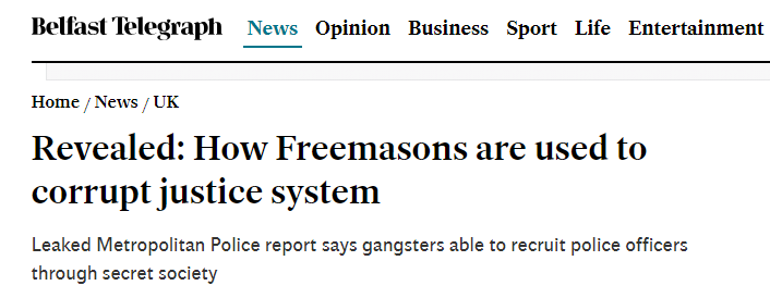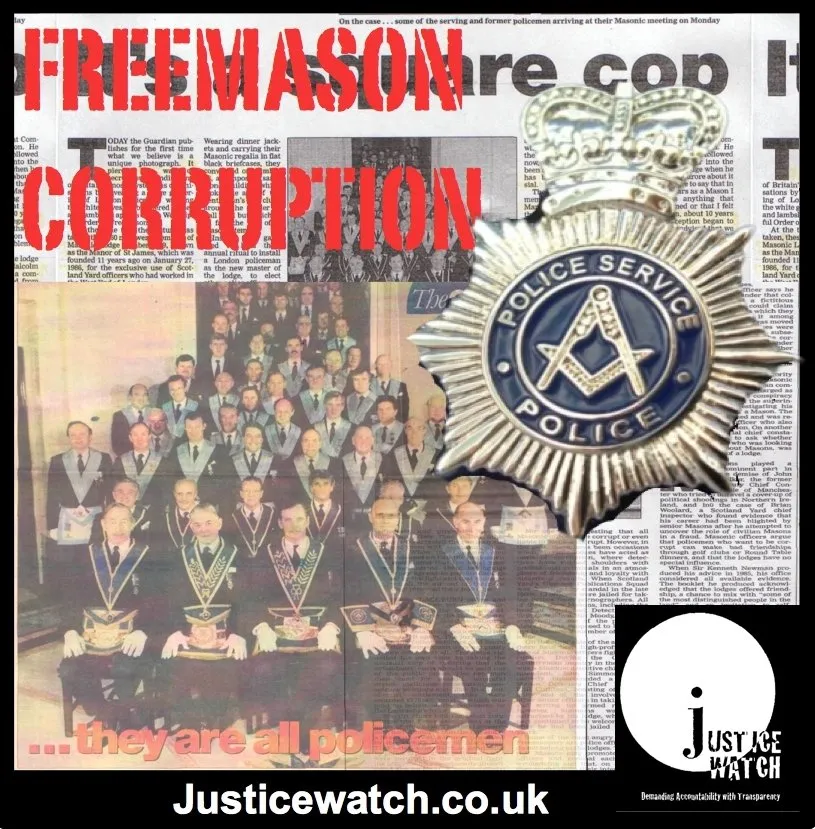 "Freemasons are a Organised Crime Group that have historically been involved in crime,they take an oath to serve their own AND NOT THE PUBLIC.They cover for each other & look out for each other which is clearly a conflict in interest to say the least."justicewatch.co.uk/freemason-corr…