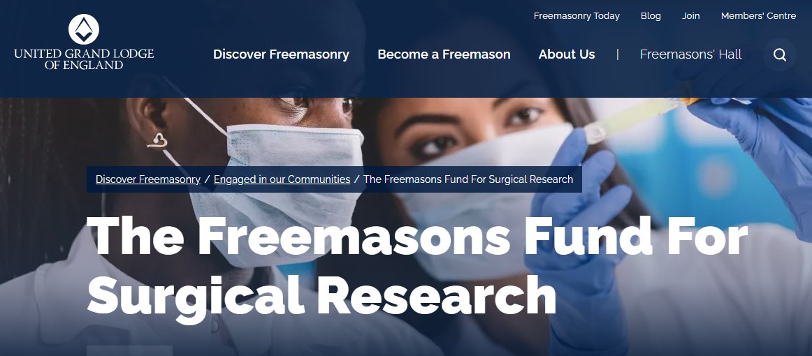 "The Freemasons’ Fund for Surgical Research (FFSR) provides Research Fellows of the Royal College of Surgeons (RCS) with grants each year to pursue cutting edge research work, which might otherwise not have been funded." ugle.org.uk/discover-freem…