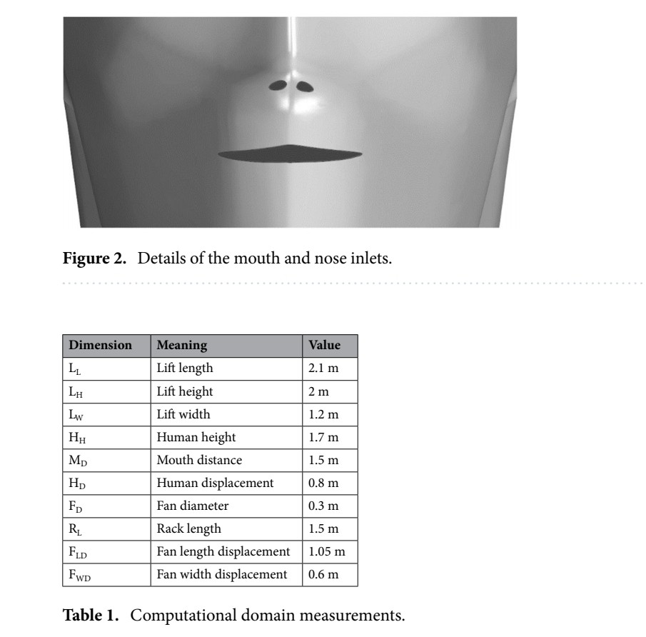 2) "The impact of mechanical ventilation on airborne diseases is not completely known. The current study focused on a hospital lift where two subjects were included: a healthy passenger and an infected one.