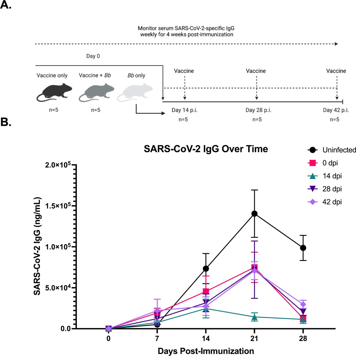 Here, we show that mice infected with B. burgdorferi and concomitantly immunized with SARS-CoV-2 spike protein had an abrogated antibody response to the immunization.