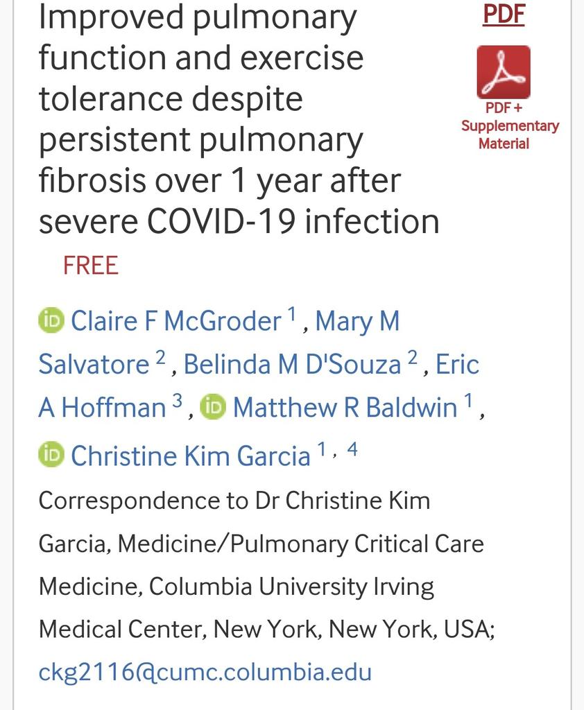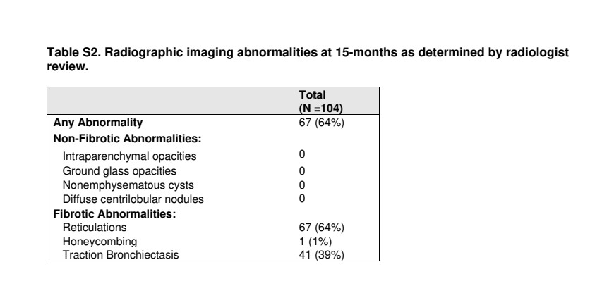 3) "We conducted a prospective single-centre cohort study of 104 multi-ethnic severe COVID-19 survivors from the first wave of the pandemic 15โmonths after hospitalisation. Of those who were assessed at 4 and 15โmonths, improvement of ground glass opacities ...