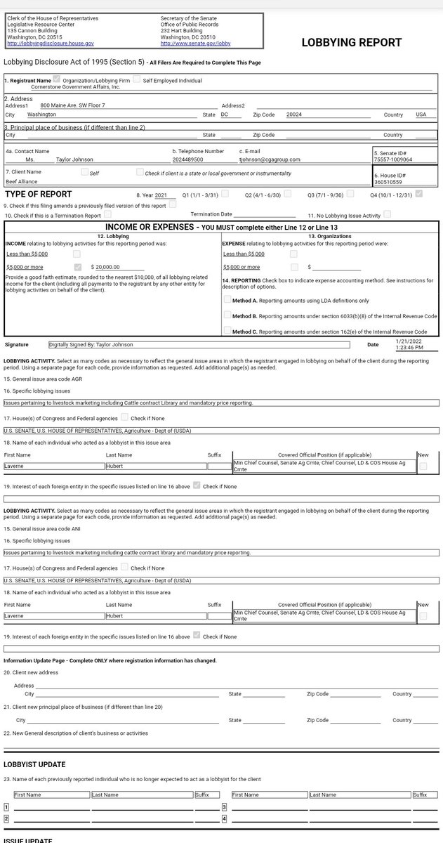 According to the Beef Alliance website, they've been around since 2015, but according to IRS data, they've only spent 20k on lobbying—this doesn't add up for a supposed "lobbying group" representing 25% of the fed cattle industry