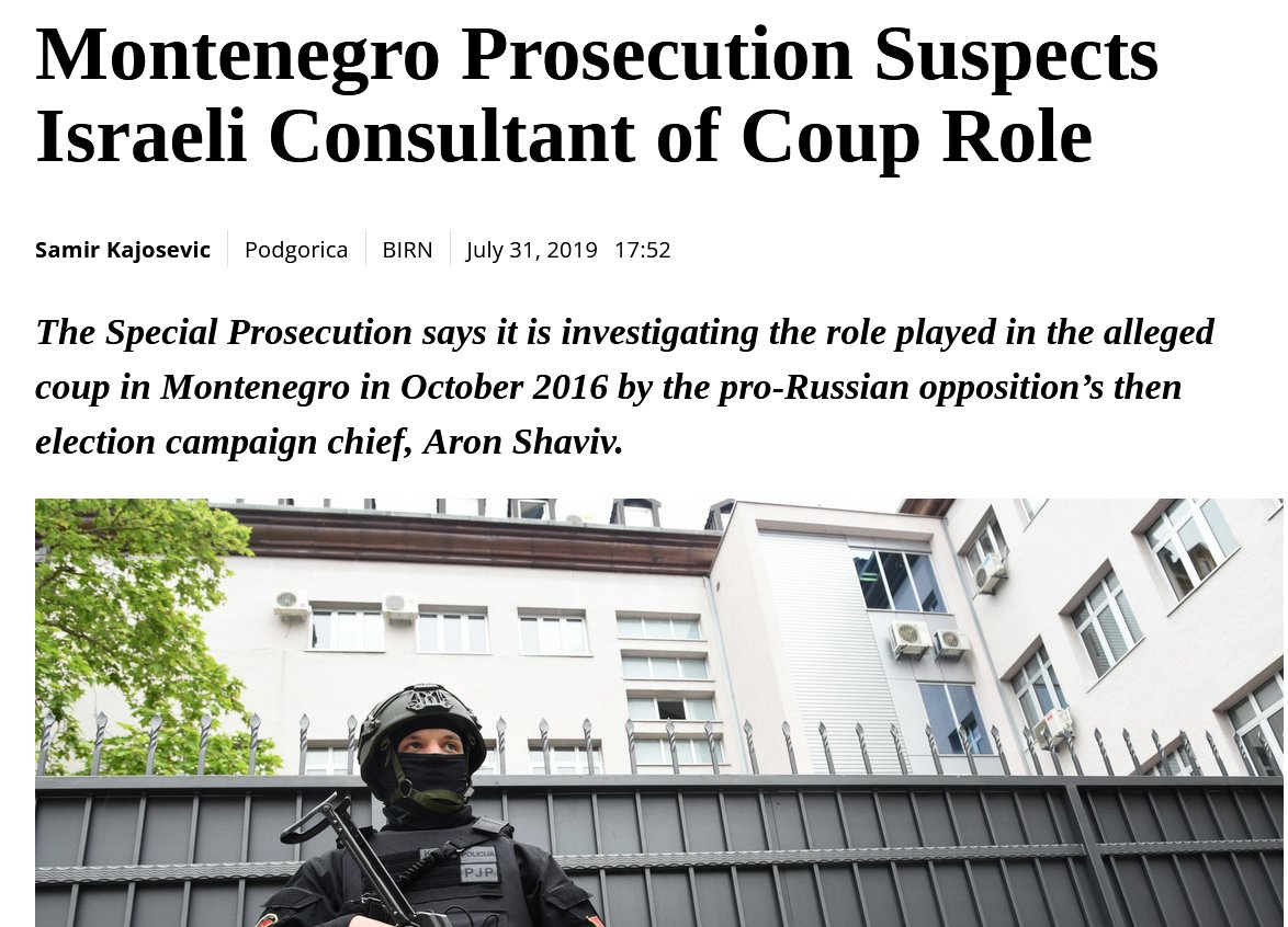 Montenegro 2016. Shaviv was suspected "...of helping the alleged coup attempt in October 2016, and of creating a criminal organization."