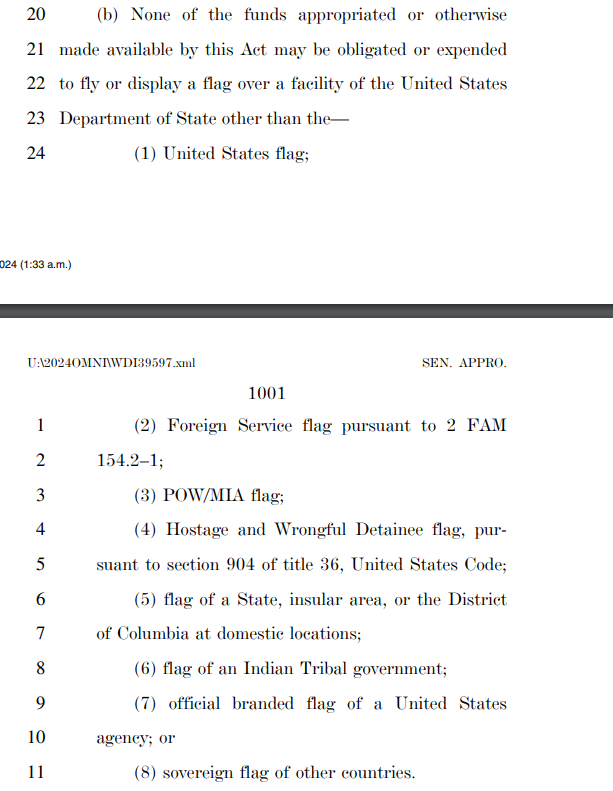 Those riders were nowhere to be found in the final bill. Only a single rider made the cut - a pride flag ban for flying flags above embasies.