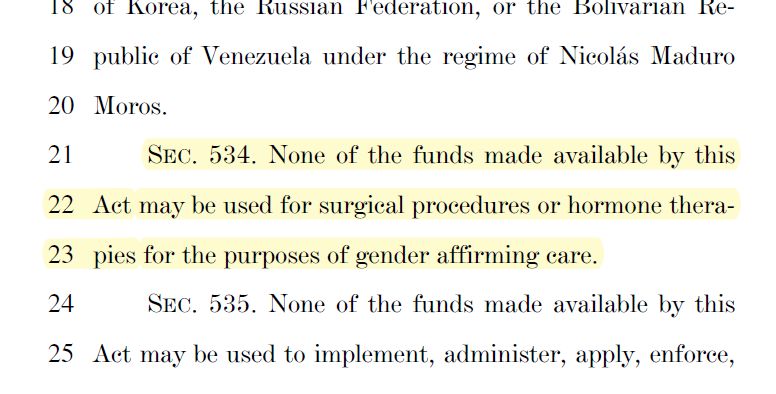 7. Here's one provision, for instance... this would have banned ALL HHS funding for trans care, which includes the private marketplace!